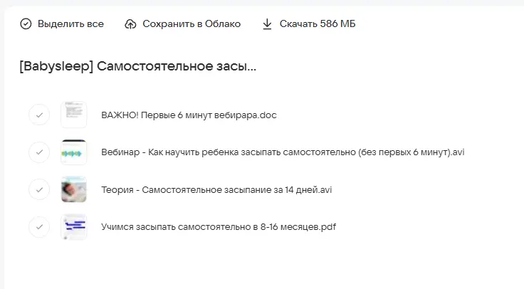 Вы находитесь на странице товара «Babysleep - Самостоятельное засыпание за 14 дней (5,5 мес.–3 года)», это материал который, мы надеемся, принесет вам пользу. Данный курс расположен на платформе «Облако Mail».Скриншоты с платформы на которой расположены материалы вы можете найти выше. В нашем магазине курсы доступны по самым выгодным ценам. Вы получаете этот курс, купив в нашем магазине MANY-COURSES.NET, с огромной скидкой, всего 190 рублей. Обучающий курс входит в рубрику «Дети и родители», вы можете поискать другие сливы курсов в этой рубрике. В нашем магазине Вы найдёте ещё много курсов от автора «», достаточно ввести в поиск имя автора.