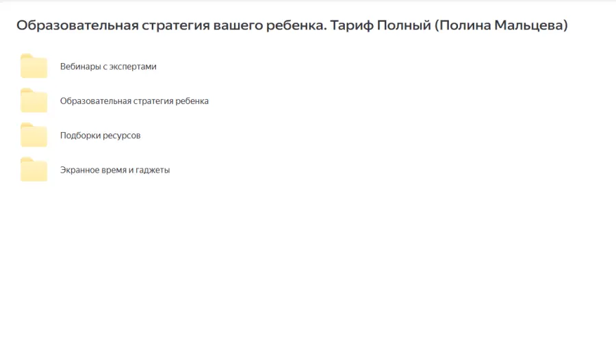Вы находитесь на странице товара «Полина Мальцева - Образовательная стратегия вашего ребенка. Тариф Полный», это материал который, мы надеемся, принесет вам пользу. Данный курс расположен на платформе «Яндекс Диск».Скриншоты с платформы на которой расположены материалы вы можете найти выше. В нашем магазине курсы доступны по самым выгодным ценам. Вы получаете этот курс, купив в нашем магазине MANY-COURSES.NET, с огромной скидкой, всего 290 рублей. Обучающий курс входит в рубрику «Дети и родители», вы можете поискать другие сливы курсов в этой рубрике. В нашем магазине Вы найдёте ещё много курсов от автора «Полина Мальцева», достаточно ввести в поиск имя автора.