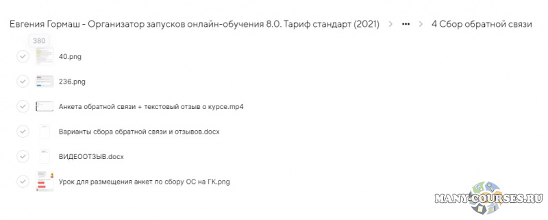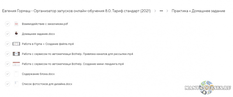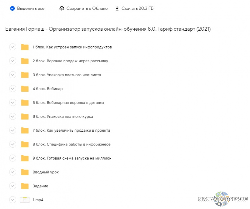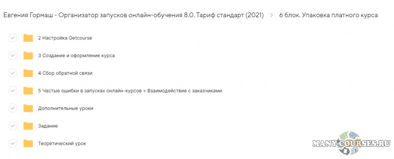 Вы находитесь на странице товара «Евгения Гормаш - Организатор запусков онлайн-обучения 8.0. Тариф стандарт», это материал 2021 года, который, мы надеемся, принесет вам пользу. Данный курс расположен на платформе «Облако Mail».Скриншоты с платформы на которой расположены материалы вы можете найти выше. В нашем магазине курсы доступны по самым выгодным ценам. Вы можете перейти на оригинальный продажник, после чего принять решение о покупке. Если бы вы покупали у самого автора, то данный курс вам обошелся 31990 рублей. Вы получаете этот курс, купив в нашем магазине MANY-COURSES.NET, с огромной скидкой, всего 400 рублей. Обучающий курс входит в рубрику «Бизнес, менеджмент, продажи», вы можете поискать другие сливы курсов в этой рубрике. В нашем магазине Вы найдёте ещё много курсов от автора «Евгения Гормаш», достаточно ввести в поиск имя автора.