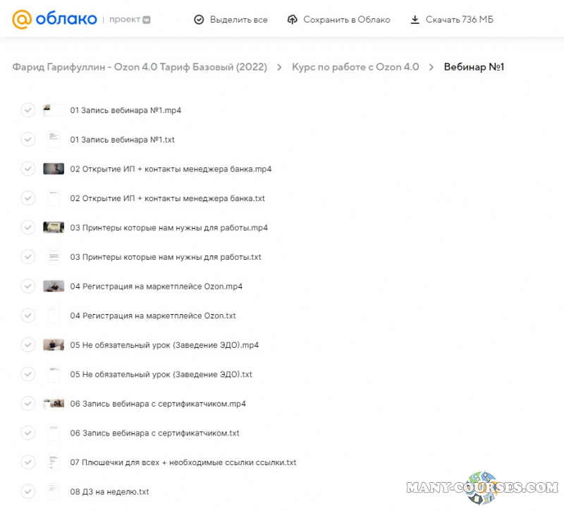 Вы находитесь на странице товара «Фарид Гарифуллин - Ozon 4.0 Тариф Базовый (2022)», это материал 2022 года, который, мы надеемся, принесет вам пользу. Данный курс расположен на платформе «Облако Mail».Скриншоты с платформы на которой расположены материалы вы можете найти выше. В нашем магазине курсы доступны по самым выгодным ценам. Вы можете перейти на оригинальный продажник, после чего принять решение о покупке. Если бы вы покупали у самого автора, то данный курс вам обошелся 19990 рублей. Вы получаете этот курс, купив в нашем магазине MANY-COURSES.NET, с огромной скидкой, всего 440 рублей. Обучающий курс входит в рубрику «Бизнес, менеджмент, продажи / Ozon», вы можете поискать другие сливы курсов в этой рубрике. В нашем магазине Вы найдёте ещё много курсов от автора «Фарид Гарифуллин», достаточно ввести в поиск имя автора.