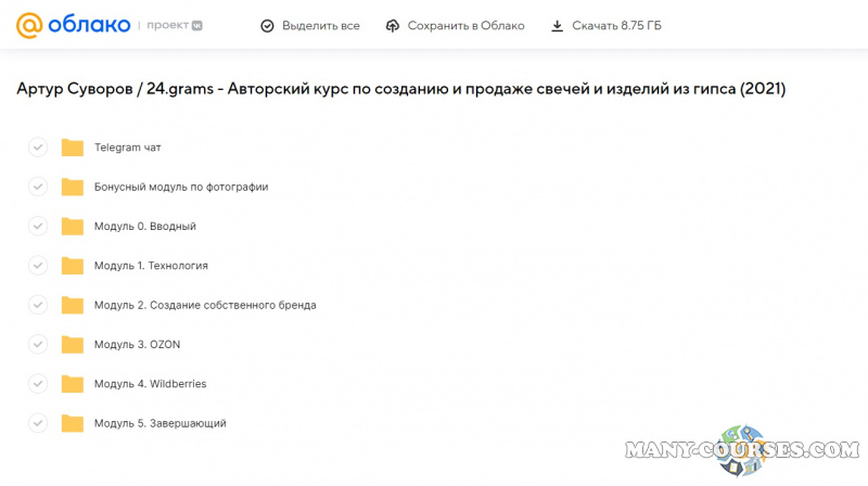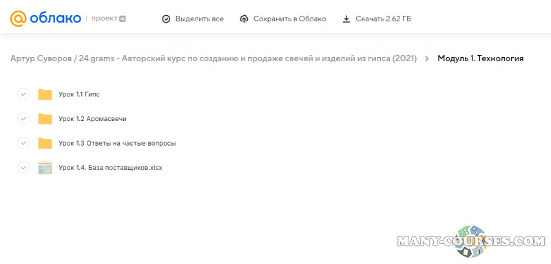 Вы находитесь на странице товара «Артур Суворов / 24.grams - Авторский курс по созданию и продаже свечей и изделий из гипса», это материал 2022 года, который, мы надеемся, принесет вам пользу. Данный курс расположен на платформе «Облако Mail».Скриншоты с платформы на которой расположены материалы вы можете найти выше. В нашем магазине курсы доступны по самым выгодным ценам. Вы можете перейти на оригинальный продажник, после чего принять решение о покупке. Вы получаете этот курс, купив в нашем магазине MANY-COURSES.NET, с огромной скидкой, всего 990 рублей. Обучающий курс входит в рубрику «Бизнес, менеджмент, продажи / Саморазвитие и мотивация / Схемы заработка», вы можете поискать другие сливы курсов в этой рубрике. В нашем магазине Вы найдёте ещё много курсов от автора «Артур Суворов», достаточно ввести в поиск имя автора.