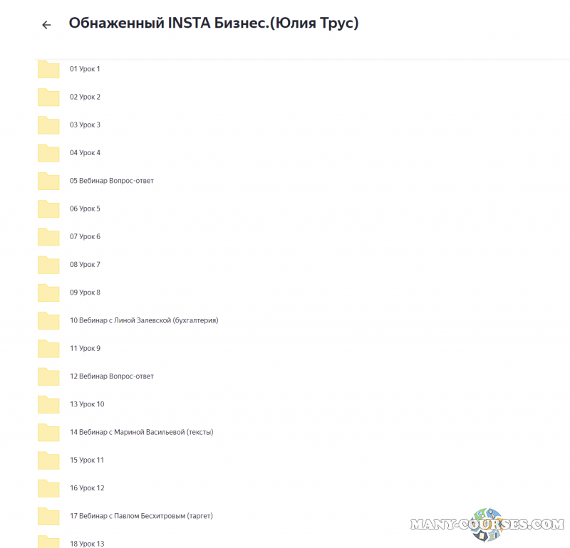 Вы находитесь на странице товара «Юлия Трус - Полный сборник курсов», это материал 2021 года, который, мы надеемся, принесет вам пользу. Данный курс расположен на платформе «Яндекс Диск».Скриншоты с платформы на которой расположены материалы вы можете найти выше. В нашем магазине курсы доступны по самым выгодным ценам. Вы получаете этот курс, купив в нашем магазине MANY-COURSES.NET, с огромной скидкой, всего 890 рублей. Обучающий курс входит в рубрику «Бизнес, менеджмент, продажи / SEO и SMM», вы можете поискать другие сливы курсов в этой рубрике. В нашем магазине Вы найдёте ещё много курсов от автора «Юлия Трус», достаточно ввести в поиск имя автора.