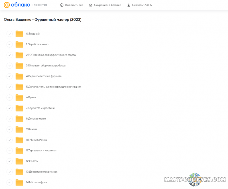 Вы находитесь на странице товара «Ольга Ващенко - Фуршетный мастер», это материал 2023 года, который, мы надеемся, принесет вам пользу. Данный курс расположен на платформе «Облако Mail».Скриншоты с платформы на которой расположены материалы вы можете найти выше. В нашем магазине курсы доступны по самым выгодным ценам. Вы можете перейти на оригинальный продажник, после чего принять решение о покупке. Вы получаете этот курс, купив в нашем магазине MANY-COURSES.NET, с огромной скидкой, всего 620 рублей. Обучающий курс входит в рубрику «Бизнес, менеджмент, продажи / Кулинария», вы можете поискать другие сливы курсов в этой рубрике. В нашем магазине Вы найдёте ещё много курсов от автора «Ольга Ващенко», достаточно ввести в поиск имя автора.