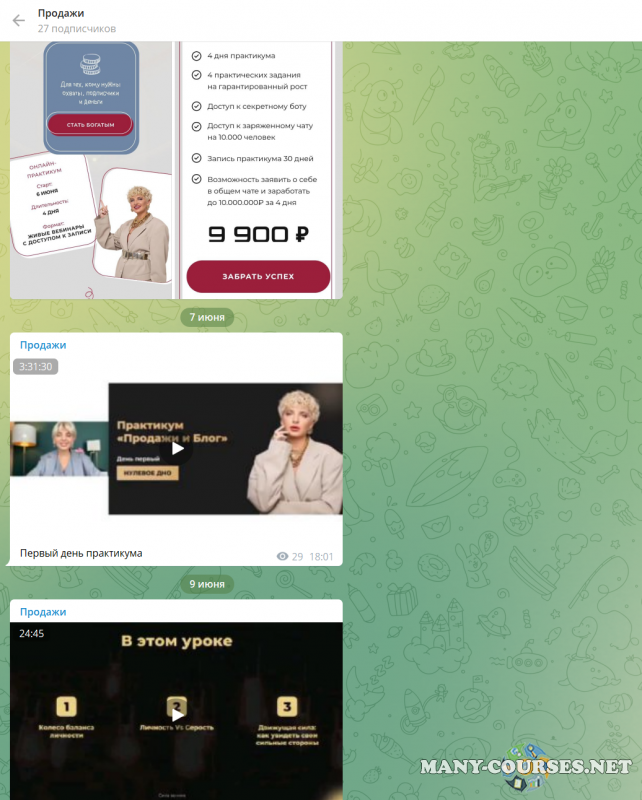 Вы находитесь на странице товара «sofi_progrev / Кристина Софи - Продажи и блог. Тариф Успех (2023)», это материал 2023 года, который, мы надеемся, принесет вам пользу. Данный курс расположен на платформе «Канал Telegram».Скриншоты с платформы на которой расположены материалы вы можете найти выше. В нашем магазине курсы доступны по самым выгодным ценам. Вы получаете этот курс, купив в нашем магазине MANY-COURSES.NET, с огромной скидкой, всего 690 рублей. Обучающий курс входит в рубрику «Бизнес, менеджмент, продажи», вы можете поискать другие сливы курсов в этой рубрике. В нашем магазине Вы найдёте ещё много курсов от автора «Кристина Софи», достаточно ввести в поиск имя автора.