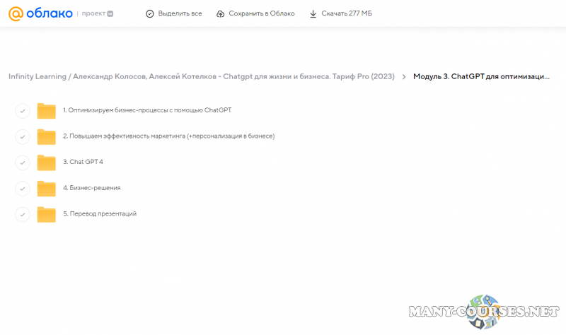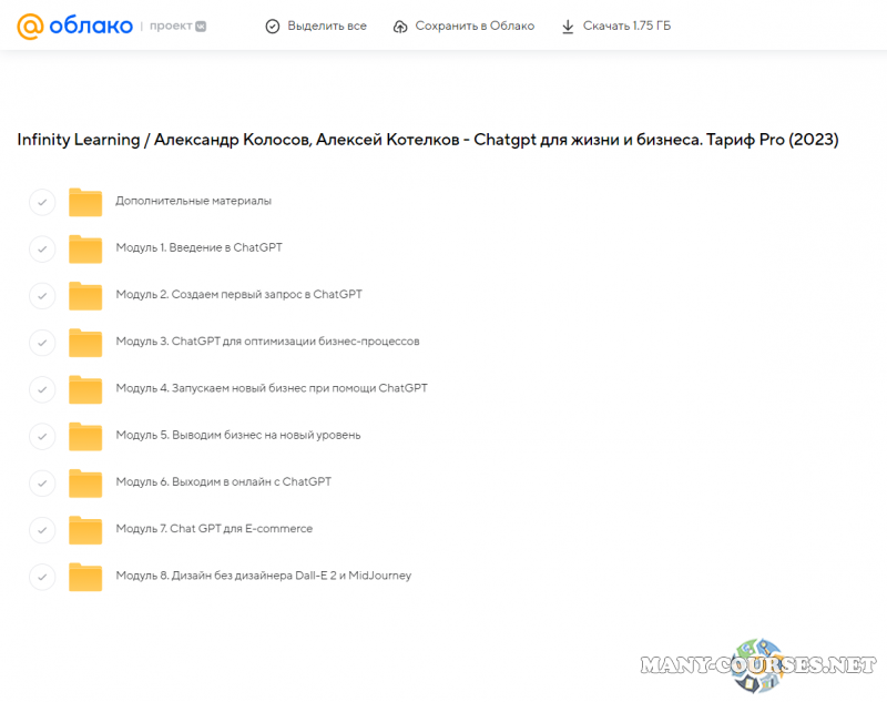 Вы находитесь на странице товара «Infinity Learning / Александр Колосов, Алексей Котелков - Chatgpt для жизни и бизнеса. Тариф Pro», это материал 2023 года, который, мы надеемся, принесет вам пользу. Данный курс расположен на платформе «Облако Mail».Скриншоты с платформы на которой расположены материалы вы можете найти выше. В нашем магазине курсы доступны по самым выгодным ценам. Вы получаете этот курс, купив в нашем магазине MANY-COURSES.NET, с огромной скидкой, всего 200 рублей. Обучающий курс входит в рубрику «Бизнес, менеджмент, продажи / Программирование / Реклама и маркетинг», вы можете поискать другие сливы курсов в этой рубрике. В нашем магазине Вы найдёте ещё много курсов от автора «Александр Колосов, Алексей Котелков», достаточно ввести в поиск имя автора.