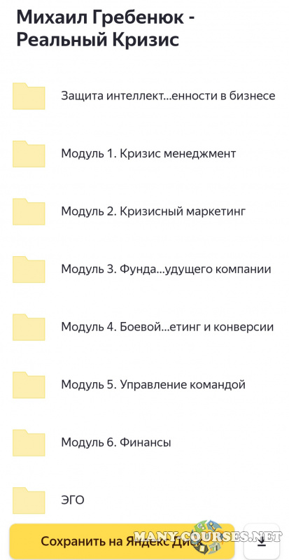 Вы находитесь на странице товара «Михаил Гребенюк - Реальный кризис», это материал 2023 года, который, мы надеемся, принесет вам пользу. Данный курс расположен на платформе «Яндекс Диск».Скриншоты с платформы на которой расположены материалы вы можете найти выше. В нашем магазине курсы доступны по самым выгодным ценам. Вы получаете этот курс, купив в нашем магазине MANY-COURSES.NET, с огромной скидкой, всего 390 рублей. Обучающий курс входит в рубрику «Бизнес, менеджмент, продажи / Реклама и маркетинг», вы можете поискать другие сливы курсов в этой рубрике. В нашем магазине Вы найдёте ещё много курсов от автора «Михаил Гребенюк», достаточно ввести в поиск имя автора.