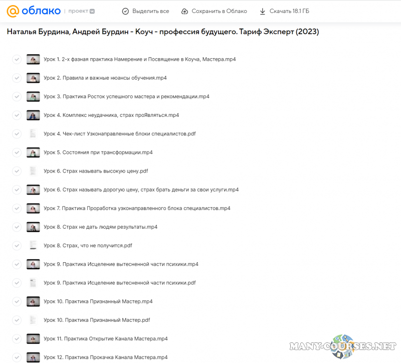 Вы находитесь на странице товара «Наталья Бурдина, Андрей Бурдин - Коуч - профессия будущего. Тариф Эксперт», это материал 2023 года, который, мы надеемся, принесет вам пользу. Данный курс расположен на платформе «Облако Mail».Скриншоты с платформы на которой расположены материалы вы можете найти выше. В нашем магазине курсы доступны по самым выгодным ценам. Вы получаете этот курс, купив в нашем магазине MANY-COURSES.NET, с огромной скидкой, всего 790 рублей. Обучающий курс входит в рубрику «Бизнес, менеджмент, продажи», вы можете поискать другие сливы курсов в этой рубрике. В нашем магазине Вы найдёте ещё много курсов от автора «Наталья Бурдина, Андрей Бурдин», достаточно ввести в поиск имя автора.