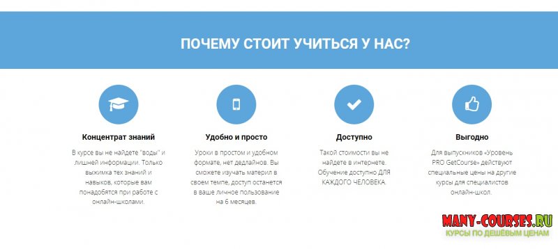 Вы находитесь на странице товара «Центр развития фрилансеров - GetCourse Уровень PRO (2021)», это материал 2021 года, который, мы надеемся, принесет вам пользу. Скриншоты с платформы на которой расположены материалы вы можете найти выше. В нашем магазине курсы доступны по самым выгодным ценам. Вы можете перейти на оригинальный продажник, после чего принять решение о покупке. Если бы вы покупали у самого автора, то данный курс вам обошелся 4900 рублей. Вы получаете этот курс, купив в нашем магазине MANY-COURSES.NET, с огромной скидкой, всего 99 рублей. Обучающий курс входит в рубрику «Бизнес, менеджмент, продажи», вы можете поискать другие сливы курсов в этой рубрике. В нашем магазине Вы найдёте ещё много курсов от автора «Центр развития фрилансеров», достаточно ввести в поиск имя автора.