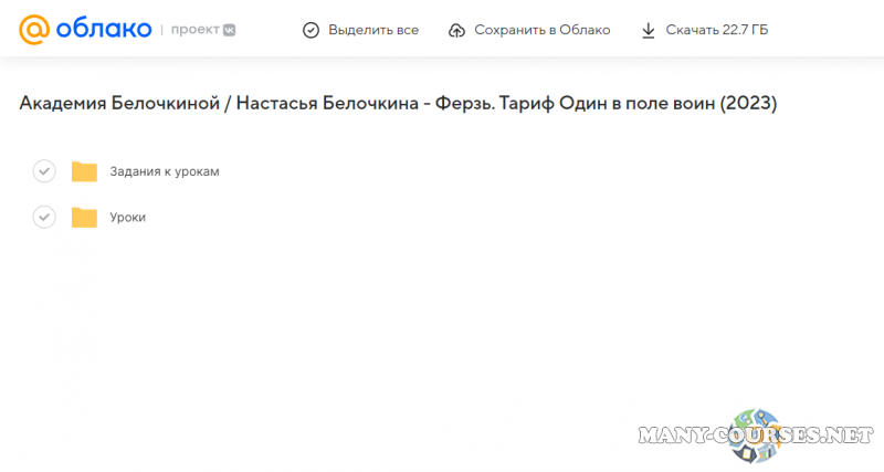 Вы находитесь на странице товара «Академия Белочкиной / Настасья Белочкина - Ферзь. Тариф Один в поле воин», это материал 2022 года, который, мы надеемся, принесет вам пользу. Данный курс расположен на платформе «Облако Mail».Скриншоты с платформы на которой расположены материалы вы можете найти выше. В нашем магазине курсы доступны по самым выгодным ценам. Вы можете перейти на оригинальный продажник, после чего принять решение о покупке. Если бы вы покупали у самого автора, то данный курс вам обошелся 65000 рублей. Вы получаете этот курс, купив в нашем магазине MANY-COURSES.NET, с огромной скидкой, всего 790 рублей. Обучающий курс входит в рубрику «Бизнес, менеджмент, продажи», вы можете поискать другие сливы курсов в этой рубрике. В нашем магазине Вы найдёте ещё много курсов от автора «Настасья Белочкина», достаточно ввести в поиск имя автора.