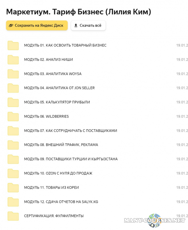 Вы находитесь на странице товара «Лилия Ким - Маркетиум. Тариф Бизнес», это материал 2023 года, который, мы надеемся, принесет вам пользу. Данный курс расположен на платформе «Яндекс Диск».Скриншоты с платформы на которой расположены материалы вы можете найти выше. В нашем магазине курсы доступны по самым выгодным ценам. Вы можете перейти на оригинальный продажник, после чего принять решение о покупке. Вы получаете этот курс, купив в нашем магазине MANY-COURSES.NET, с огромной скидкой, всего 1990 рублей. Обучающий курс входит в рубрику «Бизнес, менеджмент, продажи», вы можете поискать другие сливы курсов в этой рубрике. В нашем магазине Вы найдёте ещё много курсов от автора «Лилия Ким», достаточно ввести в поиск имя автора.