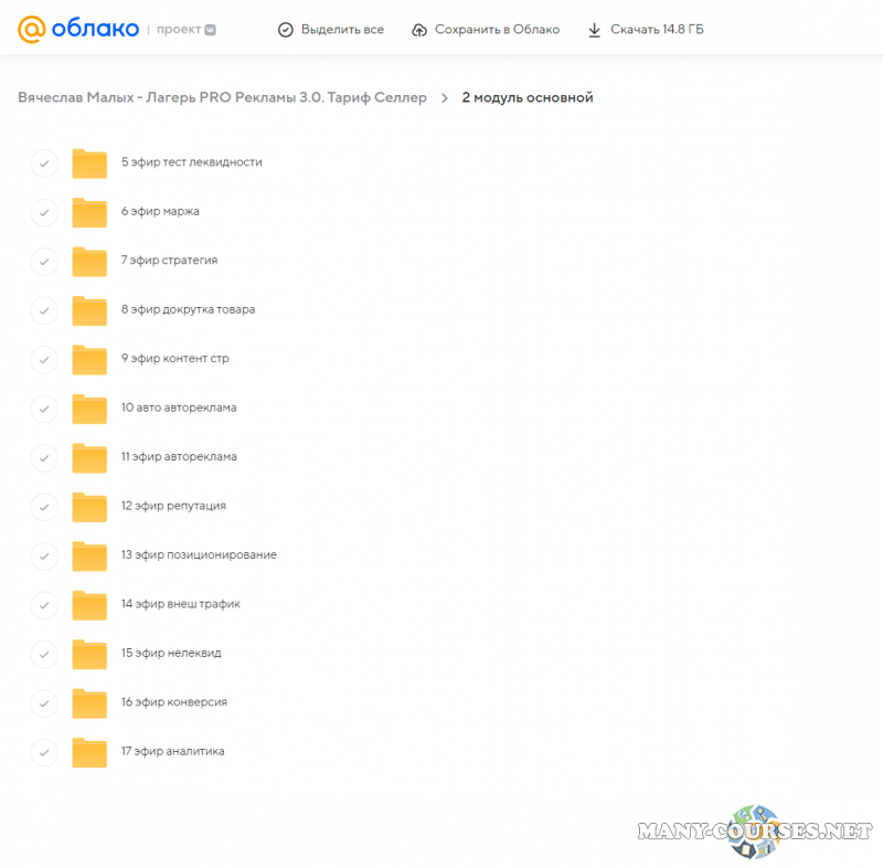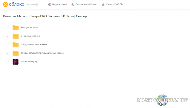 Вы находитесь на странице товара «Вячеслав Малых - Лагерь PRO Рекламы 3.0. Тариф Селлер», это материал 2024 года, который, мы надеемся, принесет вам пользу. Данный курс расположен на платформе «Облако Mail».Скриншоты с платформы на которой расположены материалы вы можете найти выше. В нашем магазине курсы доступны по самым выгодным ценам. Вы можете перейти на оригинальный продажник, после чего принять решение о покупке. Вы получаете этот курс, купив в нашем магазине MANY-COURSES.NET, с огромной скидкой, всего 460 рублей. Обучающий курс входит в рубрику «Бизнес, менеджмент, продажи», вы можете поискать другие сливы курсов в этой рубрике. В нашем магазине Вы найдёте ещё много курсов от автора «Вячеслав Малых», достаточно ввести в поиск имя автора.