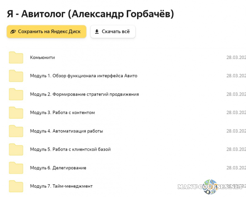 Вы находитесь на странице товара «Александр Горбачёв - Я - Авитолог. Тариф Базовый», это материал 2024 года, который, мы надеемся, принесет вам пользу. Данный курс расположен на платформе «Яндекс Диск».Скриншоты с платформы на которой расположены материалы вы можете найти выше. В нашем магазине курсы доступны по самым выгодным ценам. Вы можете перейти на оригинальный продажник, после чего принять решение о покупке. Вы получаете этот курс, купив в нашем магазине MANY-COURSES.NET, с огромной скидкой, всего 1990 рублей. Обучающий курс входит в рубрику «Бизнес, менеджмент, продажи», вы можете поискать другие сливы курсов в этой рубрике. В нашем магазине Вы найдёте ещё много курсов от автора «Александр Горбачёв», достаточно ввести в поиск имя автора.