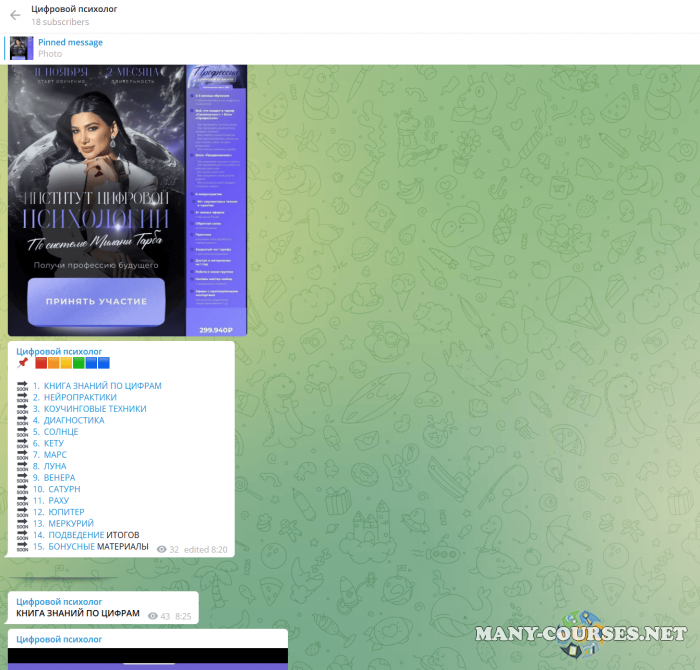 Вы находитесь на странице товара «Милана Тарба - Институт цифровой психологии. Тариф Профессия», это материал который, мы надеемся, принесет вам пользу. Данный курс расположен на платформе «Канал Telegram».Скриншоты с платформы на которой расположены материалы вы можете найти выше. В нашем магазине курсы доступны по самым выгодным ценам. Вы можете перейти на оригинальный продажник, после чего принять решение о покупке. Если бы вы покупали у самого автора, то данный курс вам обошелся 299940 рублей. Вы получаете этот курс, купив в нашем магазине MANY-COURSES.NET, с огромной скидкой, всего 990 рублей. Обучающий курс входит в рубрику «Бизнес, менеджмент, продажи / Психология / Эзотерика и оккультизм», вы можете поискать другие сливы курсов в этой рубрике. В нашем магазине Вы найдёте ещё много курсов от автора «Милана Тарба», достаточно ввести в поиск имя автора.