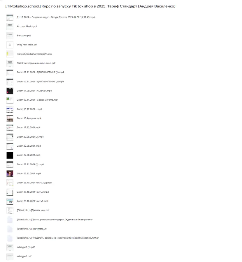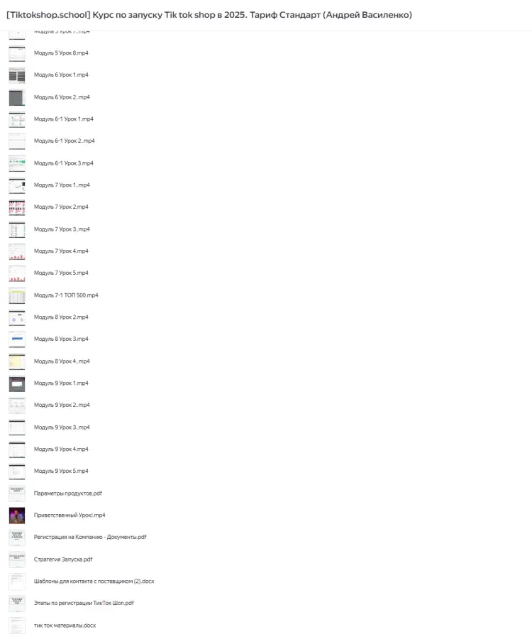 Вы находитесь на странице товара «Tiktokshop.school / Андрей Василенко - Курс по запуску Tik tok shop в 2025. Тариф Стандарт», это материал 2025 года, который, мы надеемся, принесет вам пользу. Данный курс расположен на платформе «Яндекс Диск».Скриншоты с платформы на которой расположены материалы вы можете найти выше. В нашем магазине курсы доступны по самым выгодным ценам. Вы можете перейти на оригинальный продажник, после чего принять решение о покупке. Вы получаете этот курс, купив в нашем магазине MANY-COURSES.NET, с огромной скидкой, всего 890 рублей. Обучающий курс входит в рубрику «Бизнес, менеджмент, продажи», вы можете поискать другие сливы курсов в этой рубрике. В нашем магазине Вы найдёте ещё много курсов от автора «Андрей Василенко», достаточно ввести в поиск имя автора.