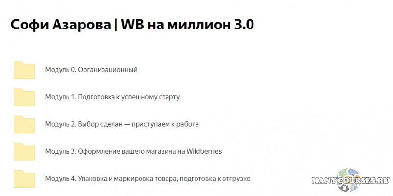 Вы находитесь на странице товара «Софи Азарова - WB на миллион 3.0. Тариф - Я сам. 3 поток (2021)», это материал 2021 года, который, мы надеемся, принесет вам пользу. Данный курс расположен на платформе «Яндекс Диск».Скриншоты с платформы на которой расположены материалы вы можете найти выше. В нашем магазине курсы доступны по самым выгодным ценам. Вы можете перейти на оригинальный продажник, после чего принять решение о покупке. Если бы вы покупали у самого автора, то данный курс вам обошелся 44990 рублей. Вы получаете этот курс, купив в нашем магазине MANY-COURSES.NET, с огромной скидкой, всего 450 рублей. Обучающий курс входит в рубрику «Бизнес, менеджмент, продажи / Wildberries», вы можете поискать другие сливы курсов в этой рубрике. В нашем магазине Вы найдёте ещё много курсов от автора «Софи Азарова», достаточно ввести в поиск имя автора.