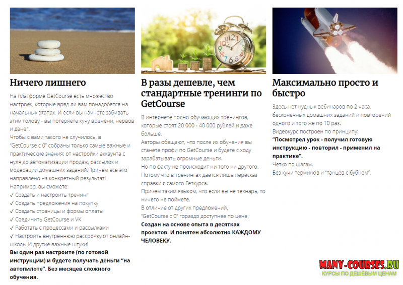 Авторы обещают, что после их обучения вы станете профи по GetCourse и будете с ходу зарабатывать огромные деньги.
