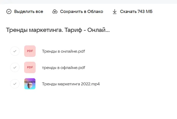 Вы находитесь на странице товара «Игорь Манн - Тренды маркетинга. Тариф - Онлайн», это материал который, мы надеемся, принесет вам пользу. Данный курс расположен на платформе «Облако Mail».Скриншоты с платформы на которой расположены материалы вы можете найти выше. В нашем магазине курсы доступны по самым выгодным ценам. Вы получаете этот курс, купив в нашем магазине MANY-COURSES.NET, с огромной скидкой, всего 200 рублей. Обучающий курс входит в рубрику «Бизнес, менеджмент, продажи», вы можете поискать другие сливы курсов в этой рубрике. В нашем магазине Вы найдёте ещё много курсов от автора «Игорь Манн», достаточно ввести в поиск имя автора.