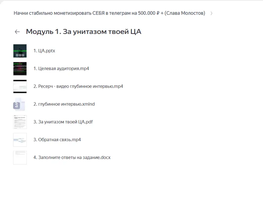 Вы находитесь на странице товара «Слава Молостов - Начни стабильно монетизировать СЕБЯ в телеграм на 500.000 ₽ +», это материал 2025 года, который, мы надеемся, принесет вам пользу. Данный курс расположен на платформе «Яндекс Диск».Скриншоты с платформы на которой расположены материалы вы можете найти выше. В нашем магазине курсы доступны по самым выгодным ценам. Вы можете перейти на оригинальный продажник, после чего принять решение о покупке. Вы получаете этот курс, купив в нашем магазине MANY-COURSES.NET, с огромной скидкой, всего 3990 рублей. Обучающий курс входит в рубрику «Бизнес, менеджмент, продажи / SEO и SMM», вы можете поискать другие сливы курсов в этой рубрике. В нашем магазине Вы найдёте ещё много курсов от автора «Слава Молостов», достаточно ввести в поиск имя автора.