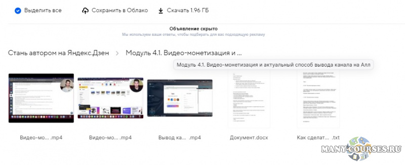 Вы находитесь на странице товара «Евгений Жамкачиев - Стань автором на Яндекс.Дзен и начни зарабатывать от 100.000 рублей в месяц», это материал 2021 года, который, мы надеемся, принесет вам пользу. Данный курс расположен на платформе «Облако Mail».Скриншоты с платформы на которой расположены материалы вы можете найти выше. В нашем магазине курсы доступны по самым выгодным ценам. Вы можете перейти на оригинальный продажник, после чего принять решение о покупке. Если бы вы покупали у самого автора, то данный курс вам обошелся 14990 рублей. Вы получаете этот курс, купив в нашем магазине MANY-COURSES.NET, с огромной скидкой, всего 100 рублей. Обучающий курс входит в рубрику «Бизнес, менеджмент, продажи / Схемы заработка», вы можете поискать другие сливы курсов в этой рубрике. В нашем магазине Вы найдёте ещё много курсов от автора «Евгений Жамкачиев», достаточно ввести в поиск имя автора.