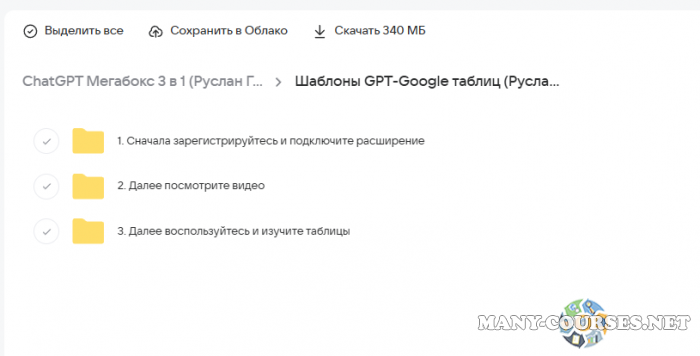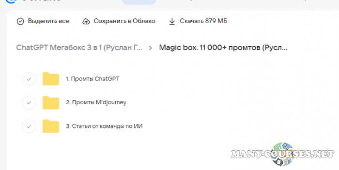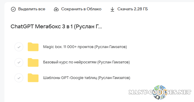 Вы находитесь на странице товара «Руслан Гамзатов - ChatGPT Мегабокс 3 в 1: 11 000+ промтов, базовый курс, сет шаблонов таблиц», это материал который, мы надеемся, принесет вам пользу. Данный курс расположен на платформе «Облако Mail».Скриншоты с платформы на которой расположены материалы вы можете найти выше. В нашем магазине курсы доступны по самым выгодным ценам. Если бы вы покупали у самого автора, то данный курс вам обошелся 7990 рублей. Вы получаете этот курс, купив в нашем магазине MANY-COURSES.NET, с огромной скидкой, всего 450 рублей. Обучающий курс входит в рубрику «Нейросети», вы можете поискать другие сливы курсов в этой рубрике. В нашем магазине Вы найдёте ещё много курсов от автора «Руслан Гамзатов», достаточно ввести в поиск имя автора.