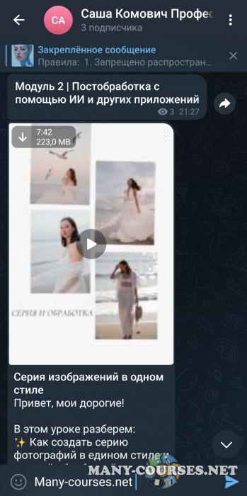 Вы находитесь на странице товара «Саша Комович - Профессия Нейрофотограф. Тариф Эксперт», это материал 2025 года, который, мы надеемся, принесет вам пользу. Данный курс расположен на платформе «Канал Telegram».Скриншоты с платформы на которой расположены материалы вы можете найти выше. В нашем магазине курсы доступны по самым выгодным ценам. Вы можете перейти на оригинальный продажник, после чего принять решение о покупке. Если бы вы покупали у самого автора, то данный курс вам обошелся 15990 рублей. Вы получаете этот курс, купив в нашем магазине MANY-COURSES.NET, с огромной скидкой, всего 590 рублей. Обучающий курс входит в рубрику «Нейросети / Видео и фото», вы можете поискать другие сливы курсов в этой рубрике. В нашем магазине Вы найдёте ещё много курсов от автора «Саша Комович», достаточно ввести в поиск имя автора.