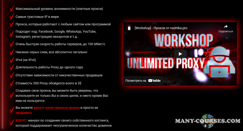 Вы находитесь на странице товара «Василий Нашиба - PROXY [Самые лучшие прокси]», это материал 2022 года, который, мы надеемся, принесет вам пользу. Данный курс расположен на платформе «Облако Mail».Скриншоты с платформы на которой расположены материалы вы можете найти выше. В нашем магазине курсы доступны по самым выгодным ценам. Если бы вы покупали у самого автора, то данный курс вам обошелся 30000 рублей. Вы получаете этот курс, купив в нашем магазине MANY-COURSES.NET, с огромной скидкой, всего 190 рублей. Обучающий курс входит в рубрику «Реклама и маркетинг», вы можете поискать другие сливы курсов в этой рубрике. В нашем магазине Вы найдёте ещё много курсов от автора «Василий Нашиба», достаточно ввести в поиск имя автора.