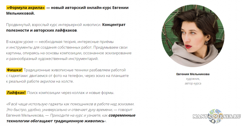 «Формула акрила» — новый авторский онлайн-курс Евгении Мельниковой.