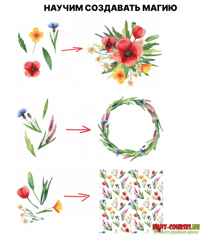 - нарисуете элементы для создания букетов, венков и паттернов;