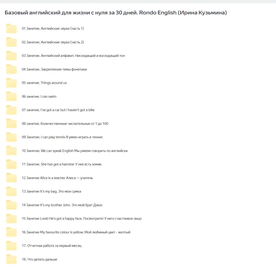 - 16 занятий (более 50 видео-уроков) по разбору звуков, грамматических конструкция и полезной лексике.