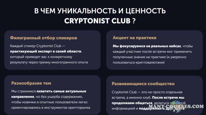 Вы находитесь на странице товара «Cryptonist Club - Погружение в мир DeFi и криптовалют», это материал 2022 года, который, мы надеемся, принесет вам пользу. Данный курс расположен на платформе «Облако Mail».Скриншоты с платформы на которой расположены материалы вы можете найти выше. В нашем магазине курсы доступны по самым выгодным ценам. Вы можете перейти на оригинальный продажник, после чего принять решение о покупке. Если бы вы покупали у самого автора, то данный курс вам обошелся 9990 рублей. Вы получаете этот курс, купив в нашем магазине MANY-COURSES.NET, с огромной скидкой, всего 190 рублей. Обучающий курс входит в рубрику «Инвестиции, Трейдинг, Криптовалюта / Блокчейн и криптовалюты», вы можете поискать другие сливы курсов в этой рубрике. В нашем магазине Вы найдёте ещё много курсов от автора «Cryptonist Club», достаточно ввести в поиск имя автора.