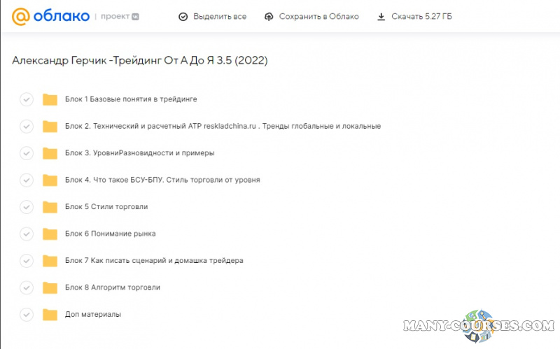 Вы находитесь на странице товара «Александр Герчик -Трейдинг От А До Я 3.5», это материал 2022 года, который, мы надеемся, принесет вам пользу. Данный курс расположен на платформе «Облако Mail».Скриншоты с платформы на которой расположены материалы вы можете найти выше. В нашем магазине курсы доступны по самым выгодным ценам. Вы можете перейти на оригинальный продажник, после чего принять решение о покупке. Если бы вы покупали у самого автора, то данный курс вам обошелся 20000 рублей. Вы получаете этот курс, купив в нашем магазине MANY-COURSES.NET, с огромной скидкой, всего 690 рублей. Обучающий курс входит в рубрику «Инвестиции, Трейдинг, Криптовалюта», вы можете поискать другие сливы курсов в этой рубрике. В нашем магазине Вы найдёте ещё много курсов от автора «Александр Герчик», достаточно ввести в поиск имя автора.