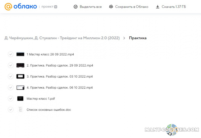 Вы находитесь на странице товара «Д. Черёмушкин, Д. Стукалин - Трейдинг на Миллион 2.0», это материал 2022 года, который, мы надеемся, принесет вам пользу. Данный курс расположен на платформе «Облако Mail».Скриншоты с платформы на которой расположены материалы вы можете найти выше. В нашем магазине курсы доступны по самым выгодным ценам. Вы получаете этот курс, купив в нашем магазине MANY-COURSES.NET, с огромной скидкой, всего 390 рублей. Обучающий курс входит в рубрику «Инвестиции, Трейдинг, Криптовалюта», вы можете поискать другие сливы курсов в этой рубрике. В нашем магазине Вы найдёте ещё много курсов от автора «Д. Черёмушкин, Д. Стукалин», достаточно ввести в поиск имя автора.