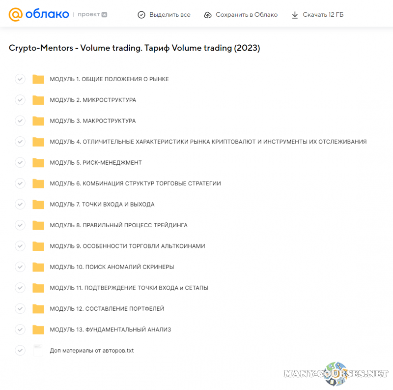 Вы находитесь на странице товара «Crypto-Mentors - Volume trading. Тариф Volume trading», это материал 2023 года, который, мы надеемся, принесет вам пользу. Данный курс расположен на платформе «Облако Mail».Скриншоты с платформы на которой расположены материалы вы можете найти выше. В нашем магазине курсы доступны по самым выгодным ценам. Вы можете перейти на оригинальный продажник, после чего принять решение о покупке. Если бы вы покупали у самого автора, то данный курс вам обошелся 79000 рублей. Вы получаете этот курс, купив в нашем магазине MANY-COURSES.NET, с огромной скидкой, всего 450 рублей. Обучающий курс входит в рубрику «Инвестиции, Трейдинг, Криптовалюта / Блокчейн и криптовалюты», вы можете поискать другие сливы курсов в этой рубрике. В нашем магазине Вы найдёте ещё много курсов от автора «Crypto-Mentors», достаточно ввести в поиск имя автора.