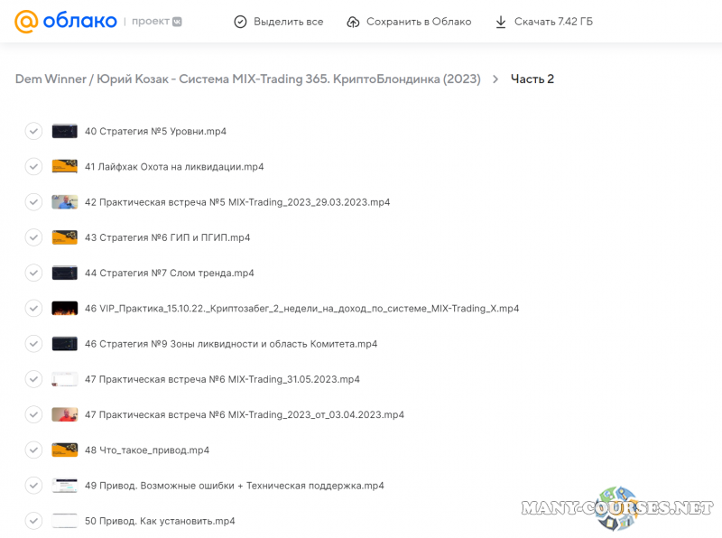Вы находитесь на странице товара «Dem Winner / Юрий Козак - Система MIX-Trading 365. КриптоБлондинка (2023)», это материал 2023 года, который, мы надеемся, принесет вам пользу. Данный курс расположен на платформе «Облако Mail».Скриншоты с платформы на которой расположены материалы вы можете найти выше. В нашем магазине курсы доступны по самым выгодным ценам. Вы можете перейти на оригинальный продажник, после чего принять решение о покупке. Если бы вы покупали у самого автора, то данный курс вам обошелся 14000 рублей. Вы получаете этот курс, купив в нашем магазине MANY-COURSES.NET, с огромной скидкой, всего 149 рублей. Обучающий курс входит в рубрику «Инвестиции, Трейдинг, Криптовалюта / Блокчейн и криптовалюты», вы можете поискать другие сливы курсов в этой рубрике. В нашем магазине Вы найдёте ещё много курсов от автора «Юрий Козак», достаточно ввести в поиск имя автора.