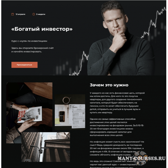 Но ведь это сложно! Совсем нет. Именно этому и научит вас данный курс — инвестировать на фондовом рынке для достижения своих целей.