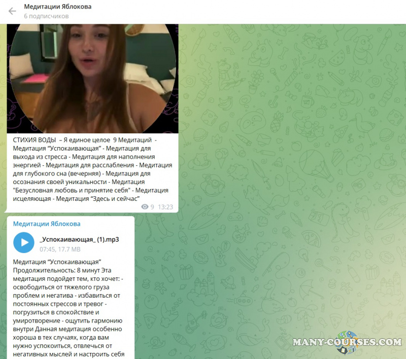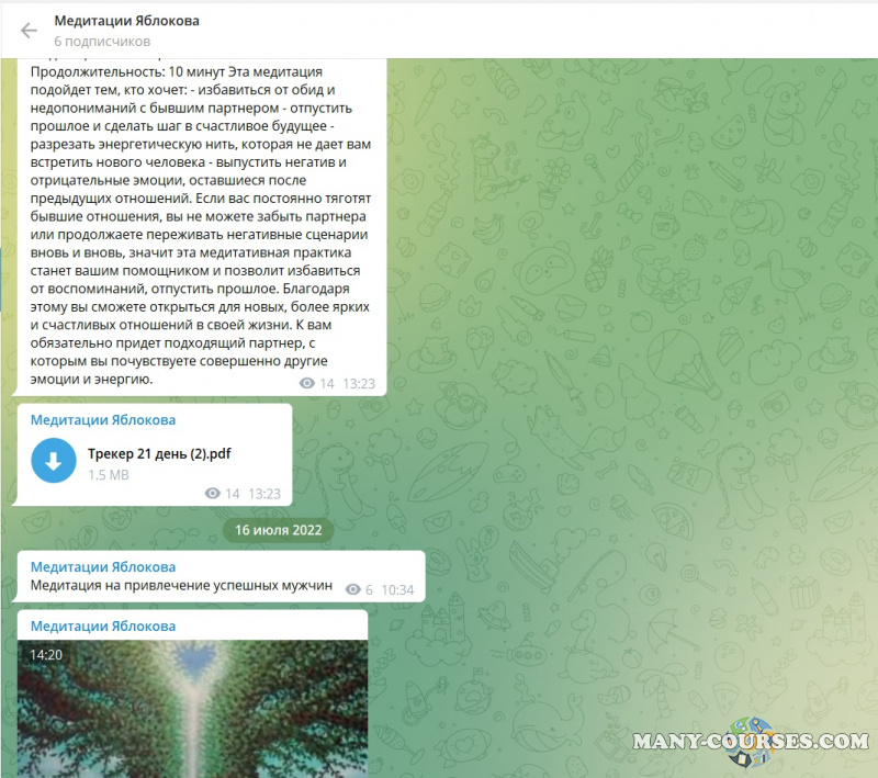 Вы находитесь на странице товара «Александра Яблокова - Стихия твоего состояния. Тариф — Хочу все медитации», это материал 2022 года, который, мы надеемся, принесет вам пользу. Данный курс расположен на платформе «Канал Telegram».Скриншоты с платформы на которой расположены материалы вы можете найти выше. В нашем магазине курсы доступны по самым выгодным ценам. Если бы вы покупали у самого автора, то данный курс вам обошелся 11990 рублей. Вы получаете этот курс, купив в нашем магазине MANY-COURSES.NET, с огромной скидкой, всего 490 рублей. Обучающий курс входит в рубрику «Эзотерика и оккультизм / Психология», вы можете поискать другие сливы курсов в этой рубрике. В нашем магазине Вы найдёте ещё много курсов от автора «Александра Яблокова», достаточно ввести в поиск имя автора.