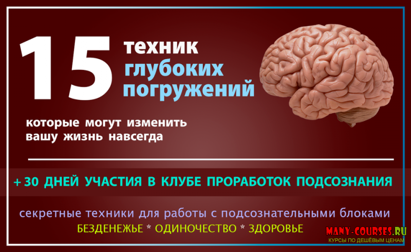 Ниже представлены техники погружения в подсознание. Каждая техника это проработка различных психологических блоков, шаблонов и связок, которые создают очень много проблем в нашей жизни.