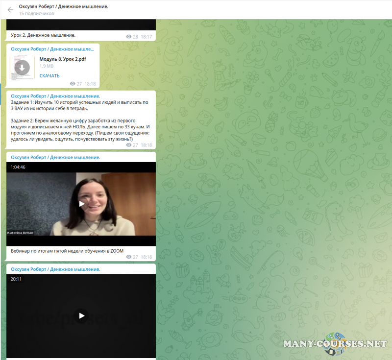 Вы находитесь на странице товара «Роберт Оксузян - Денежное мышление. Тариф - Базовый. Второй поток», это материал 2023 года, который, мы надеемся, принесет вам пользу. Данный курс расположен на платформе «Канал Telegram».Скриншоты с платформы на которой расположены материалы вы можете найти выше. В нашем магазине курсы доступны по самым выгодным ценам. Вы можете перейти на оригинальный продажник, после чего принять решение о покупке. Если бы вы покупали у самого автора, то данный курс вам обошелся 29900 рублей. Вы получаете этот курс, купив в нашем магазине MANY-COURSES.NET, с огромной скидкой, всего 490 рублей. Обучающий курс входит в рубрику «Эзотерика и оккультизм / Психология», вы можете поискать другие сливы курсов в этой рубрике. В нашем магазине Вы найдёте ещё много курсов от автора «Роберт Оксузян», достаточно ввести в поиск имя автора.
