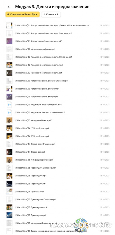 Вы находитесь на странице товара «Влада Боярская - Курс по натальной астрологии (2023)», это материал 2023 года, который, мы надеемся, принесет вам пользу. Данный курс расположен на платформе «Яндекс Диск».Скриншоты с платформы на которой расположены материалы вы можете найти выше. В нашем магазине курсы доступны по самым выгодным ценам. Вы получаете этот курс, купив в нашем магазине MANY-COURSES.NET, с огромной скидкой, всего 1390 рублей. Обучающий курс входит в рубрику «Эзотерика и оккультизм / Астрология», вы можете поискать другие сливы курсов в этой рубрике. В нашем магазине Вы найдёте ещё много курсов от автора «Влада Боярская», достаточно ввести в поиск имя автора.