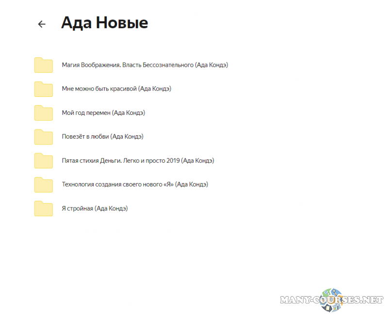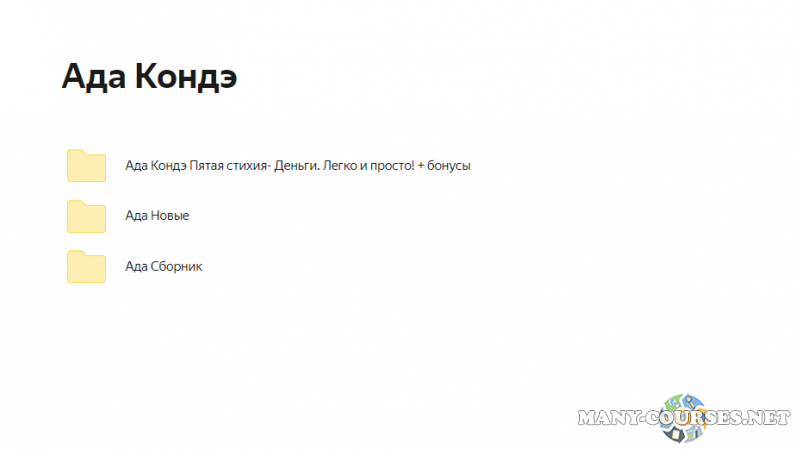 Вы находитесь на странице товара «Ада Кондэ - Пакет из 20 семинаров», это материал 2022 года, который, мы надеемся, принесет вам пользу. Данный курс расположен на платформе «Яндекс Диск».Скриншоты с платформы на которой расположены материалы вы можете найти выше. В нашем магазине курсы доступны по самым выгодным ценам. Вы получаете этот курс, купив в нашем магазине MANY-COURSES.NET, с огромной скидкой, всего 890 рублей. Обучающий курс входит в рубрику «Эзотерика и оккультизм / Психология», вы можете поискать другие сливы курсов в этой рубрике. В нашем магазине Вы найдёте ещё много курсов от автора «Ада Кондэ», достаточно ввести в поиск имя автора.