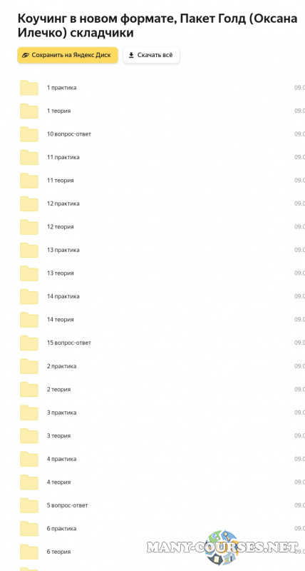 Вы находитесь на странице товара «Оксана Илечко - Коучинг в новом формат. Пакет Голд», это материал 2021 года, который, мы надеемся, принесет вам пользу. Данный курс расположен на платформе «Яндекс Диск».Скриншоты с платформы на которой расположены материалы вы можете найти выше. В нашем магазине курсы доступны по самым выгодным ценам. Вы получаете этот курс, купив в нашем магазине MANY-COURSES.NET, с огромной скидкой, всего 420 рублей. Обучающий курс входит в рубрику «Эзотерика и оккультизм / Психология», вы можете поискать другие сливы курсов в этой рубрике. В нашем магазине Вы найдёте ещё много курсов от автора «Оксана Илечко», достаточно ввести в поиск имя автора.