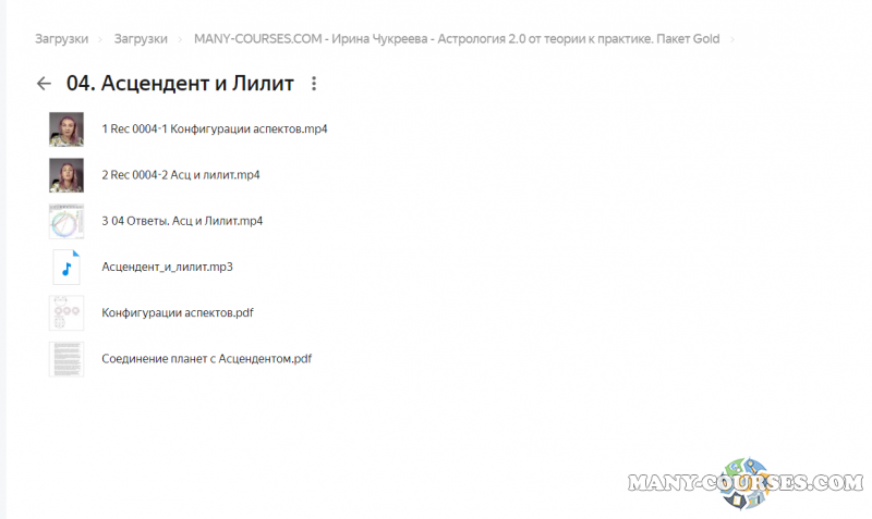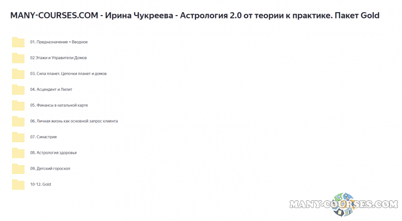 Вы находитесь на странице товара «Ирина Чукреева - Астрология 2.0 от теории к практике», это материал 2020 года, который, мы надеемся, принесет вам пользу. Данный курс расположен на платформе «Яндекс Диск».Скриншоты с платформы на которой расположены материалы вы можете найти выше. В нашем магазине курсы доступны по самым выгодным ценам. Вы можете перейти на оригинальный продажник, после чего принять решение о покупке. Вы получаете этот курс, купив в нашем магазине MANY-COURSES.NET, с огромной скидкой, всего 390 рублей. Обучающий курс входит в рубрику «Эзотерика и оккультизм / Астрология», вы можете поискать другие сливы курсов в этой рубрике. В нашем магазине Вы найдёте ещё много курсов от автора «Ирина Чукреева», достаточно ввести в поиск имя автора.