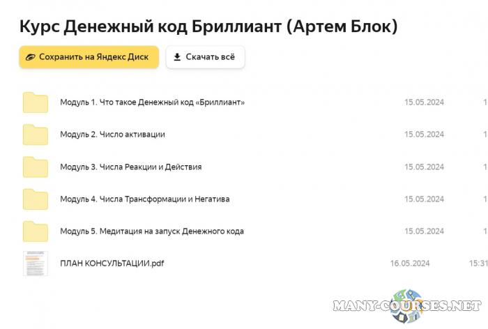 Вы находитесь на странице товара «Школа нумерологии / Артем Блок - Денежный код Бриллиант. Тариф Серебряный (2024)», это материал 2024 года, который, мы надеемся, принесет вам пользу. Данный курс расположен на платформе «Яндекс Диск».Скриншоты с платформы на которой расположены материалы вы можете найти выше. В нашем магазине курсы доступны по самым выгодным ценам. Вы можете перейти на оригинальный продажник, после чего принять решение о покупке. Если бы вы покупали у самого автора, то данный курс вам обошелся 11111 рублей. Вы получаете этот курс, купив в нашем магазине MANY-COURSES.NET, с огромной скидкой, всего 650 рублей. Обучающий курс входит в рубрику «Эзотерика и оккультизм / Нумерология», вы можете поискать другие сливы курсов в этой рубрике. В нашем магазине Вы найдёте ещё много курсов от автора «Артем Блок», достаточно ввести в поиск имя автора.