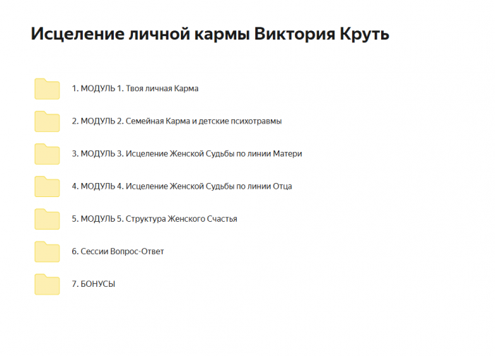 Вы находитесь на странице товара «Виктория Круть - Исцеление Личной Кармы. Тариф Базовый», это материал который, мы надеемся, принесет вам пользу. Данный курс расположен на платформе «Яндекс Диск».Скриншоты с платформы на которой расположены материалы вы можете найти выше. В нашем магазине курсы доступны по самым выгодным ценам. Вы можете перейти на оригинальный продажник, после чего принять решение о покупке. Вы получаете этот курс, купив в нашем магазине MANY-COURSES.NET, с огромной скидкой, всего 1190 рублей. Обучающий курс входит в рубрику «Эзотерика и оккультизм / Психология», вы можете поискать другие сливы курсов в этой рубрике. В нашем магазине Вы найдёте ещё много курсов от автора «Виктория Круть», достаточно ввести в поиск имя автора.