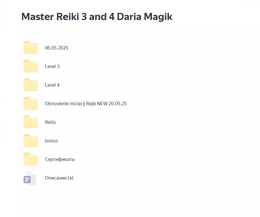 Вы находитесь на странице товара «Animaway / Дарья Мэджик - Мастер рейки», это материал 2025 года, который, мы надеемся, принесет вам пользу. Данный курс расположен на платформе «Яндекс Диск».Скриншоты с платформы на которой расположены материалы вы можете найти выше. В нашем магазине курсы доступны по самым выгодным ценам. Вы получаете этот курс, купив в нашем магазине MANY-COURSES.NET, с огромной скидкой, всего 990 рублей. Обучающий курс входит в рубрику «Эзотерика и оккультизм», вы можете поискать другие сливы курсов в этой рубрике. В нашем магазине Вы найдёте ещё много курсов от автора «Дарья Мэджик», достаточно ввести в поиск имя автора.