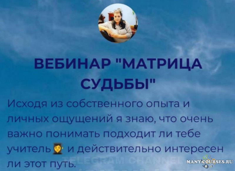- ОБУЧЕНИЕ на полном курсе и МАТРИЦУ СУДЬБЫ (если вы уже заказывали для себя, то можете подарить кому-то из близких)