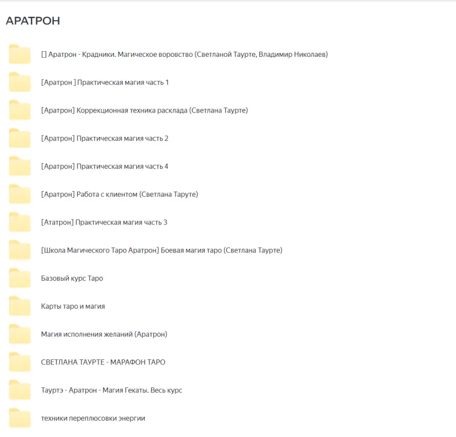 Крупный сборник АРАТРОН — обучающие курсы и материалы по таро, магическим практикам и энергетической работе под руководством Светланы Таурте (и частично Владимира Николаева).