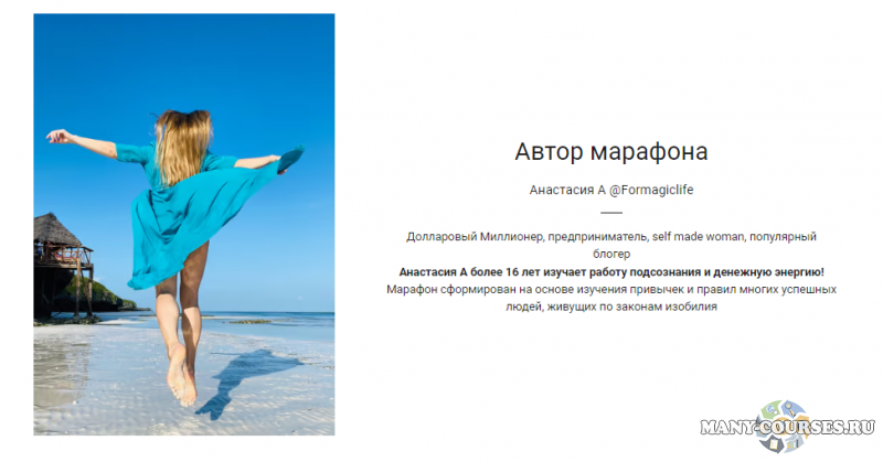 Вы находитесь на странице товара «Formagic life / Анастасия Анисимова - 10 блокираторов денег (2021)», это материал 2021 года, который, мы надеемся, принесет вам пользу. Скриншоты с платформы на которой расположены материалы вы можете найти выше. В нашем магазине курсы доступны по самым выгодным ценам. Вы можете перейти на оригинальный продажник, после чего принять решение о покупке. Если бы вы покупали у самого автора, то данный курс вам обошелся 1000 рублей. Вы получаете этот курс, купив в нашем магазине MANY-COURSES.NET, с огромной скидкой, всего 99 рублей. Обучающий курс входит в рубрику «Эзотерика и оккультизм / Психология», вы можете поискать другие сливы курсов в этой рубрике. В нашем магазине Вы найдёте ещё много курсов от автора «Анастасия Анисимова», достаточно ввести в поиск имя автора.