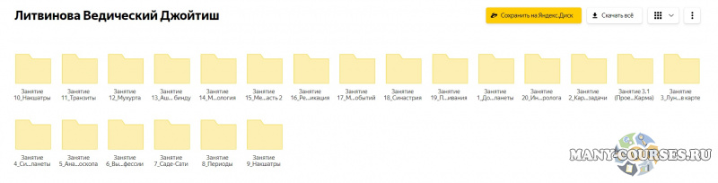 Вы находитесь на странице товара «Елена Литвинова - Ведический астролог. Джйотиш. Пакет «Специалист»», это материал 2021 года, который, мы надеемся, принесет вам пользу. Данный курс расположен на платформе «Яндекс Диск».Скриншоты с платформы на которой расположены материалы вы можете найти выше. В нашем магазине курсы доступны по самым выгодным ценам. Вы можете перейти на оригинальный продажник, после чего принять решение о покупке. Если бы вы покупали у самого автора, то данный курс вам обошелся 77999 рублей. Вы получаете этот курс, купив в нашем магазине MANY-COURSES.NET, с огромной скидкой, всего 230 рублей. Обучающий курс входит в рубрику «Эзотерика и оккультизм», вы можете поискать другие сливы курсов в этой рубрике. В нашем магазине Вы найдёте ещё много курсов от автора «Елена Литвинова», достаточно ввести в поиск имя автора.
