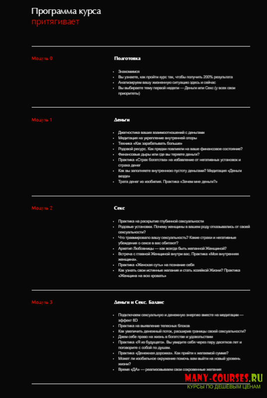 Вы находитесь на странице товара «Наталья Касарина & Роман Козаченко - Курс «Секс и Деньги» (2021)», это материал 2021 года, который, мы надеемся, принесет вам пользу. Данный курс расположен на платформе «Облако Mail».Скриншоты с платформы на которой расположены материалы вы можете найти выше. В нашем магазине курсы доступны по самым выгодным ценам. Вы можете перейти на оригинальный продажник, после чего принять решение о покупке. Если бы вы покупали у самого автора, то данный курс вам обошелся 13000 рублей. Вы получаете этот курс, купив в нашем магазине MANY-COURSES.NET, с огромной скидкой, всего 150 рублей. Обучающий курс входит в рубрику «Эзотерика и оккультизм», вы можете поискать другие сливы курсов в этой рубрике. В нашем магазине Вы найдёте ещё много курсов от автора «Наталья Касарина & Роман Козаченко», достаточно ввести в поиск имя автора.